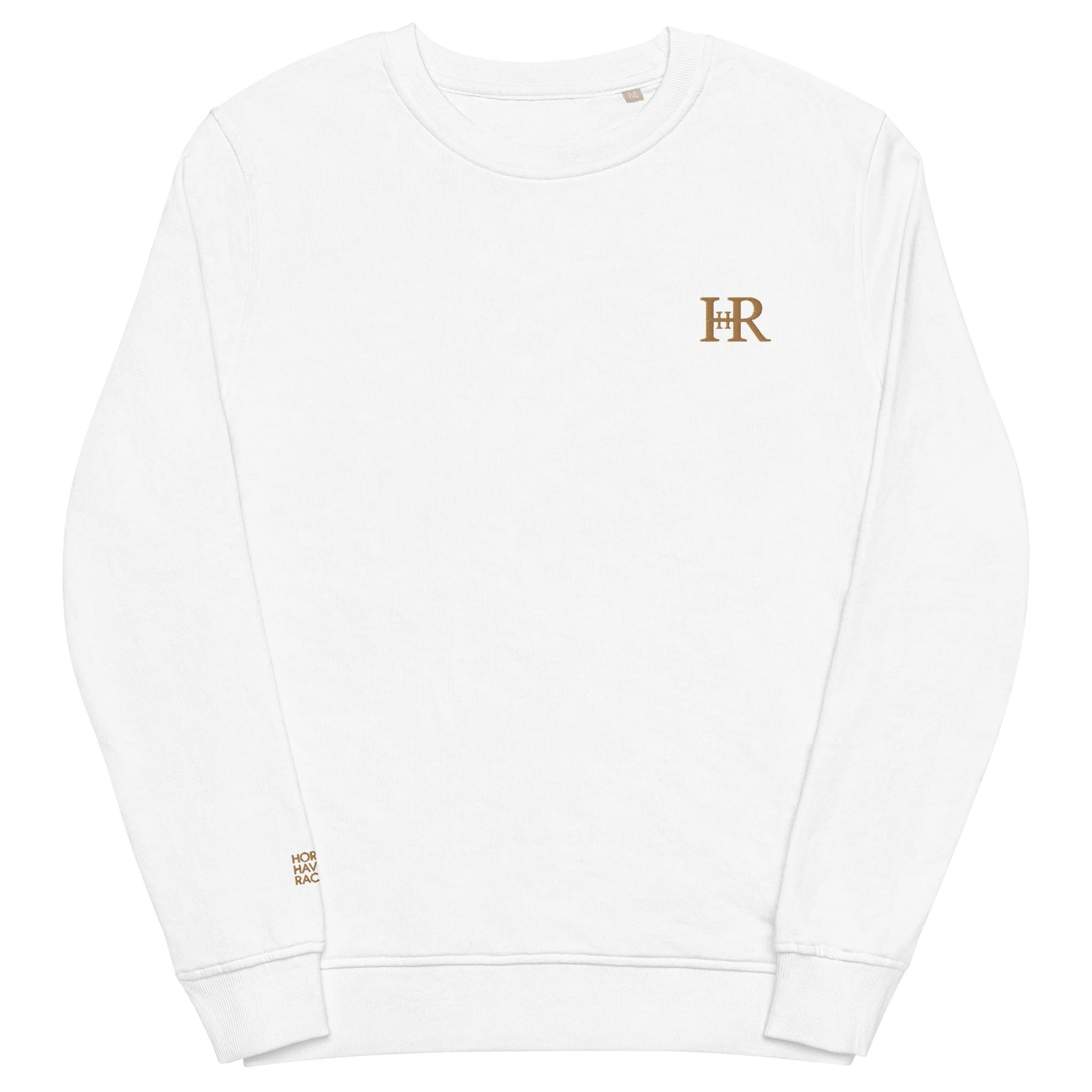 The Unisex organic sweatshirt is made of organic and recycled materials, and feels soft and cozy to the touch. It has set-in sleeves, 2×2 rib at collar, and a self-fabric neck tape. HHR logo on chest and "Horse Haven Racing" embroidered on wrist.